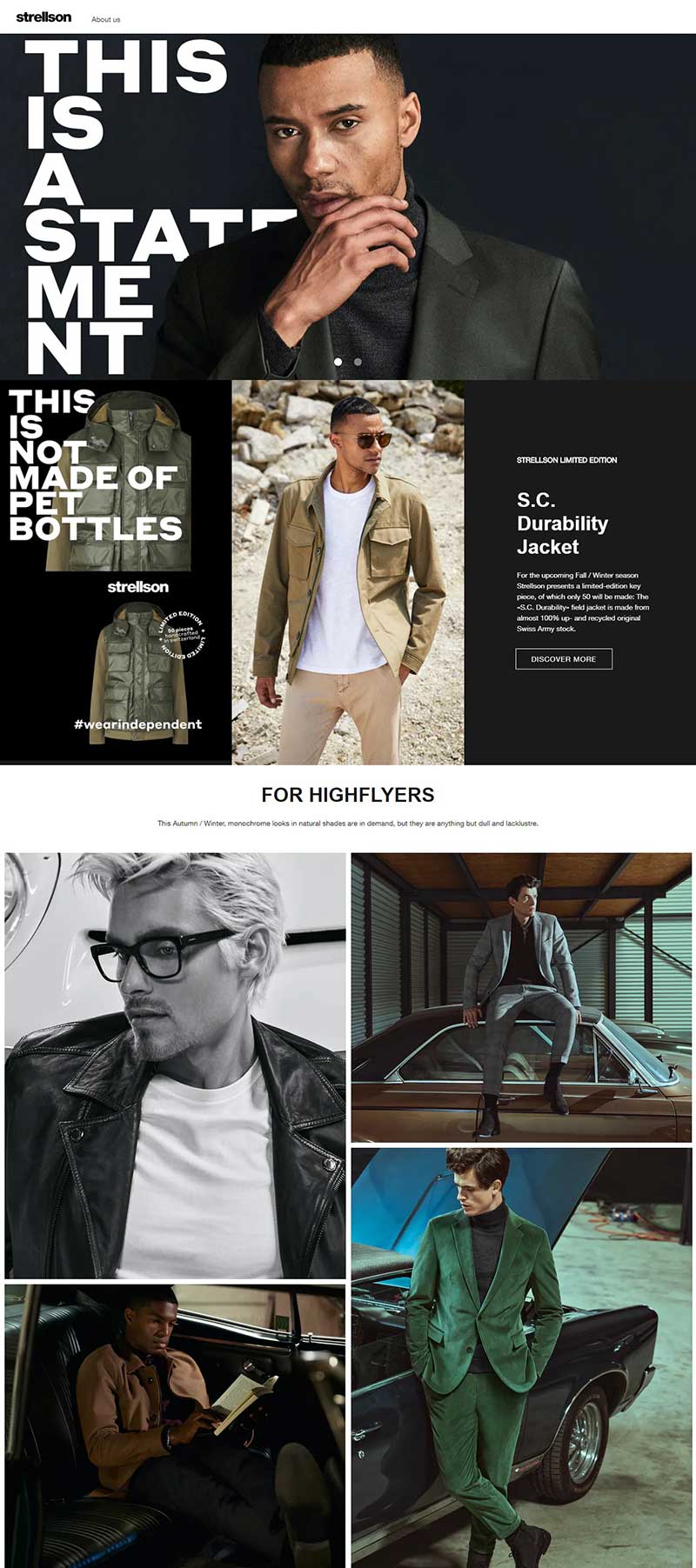 Strellson, a Swiss men's clothing brand, represents clear cutting and uncompromising design. The target audience of this high-end brand is successful individuals who follow their own path and know what they want.